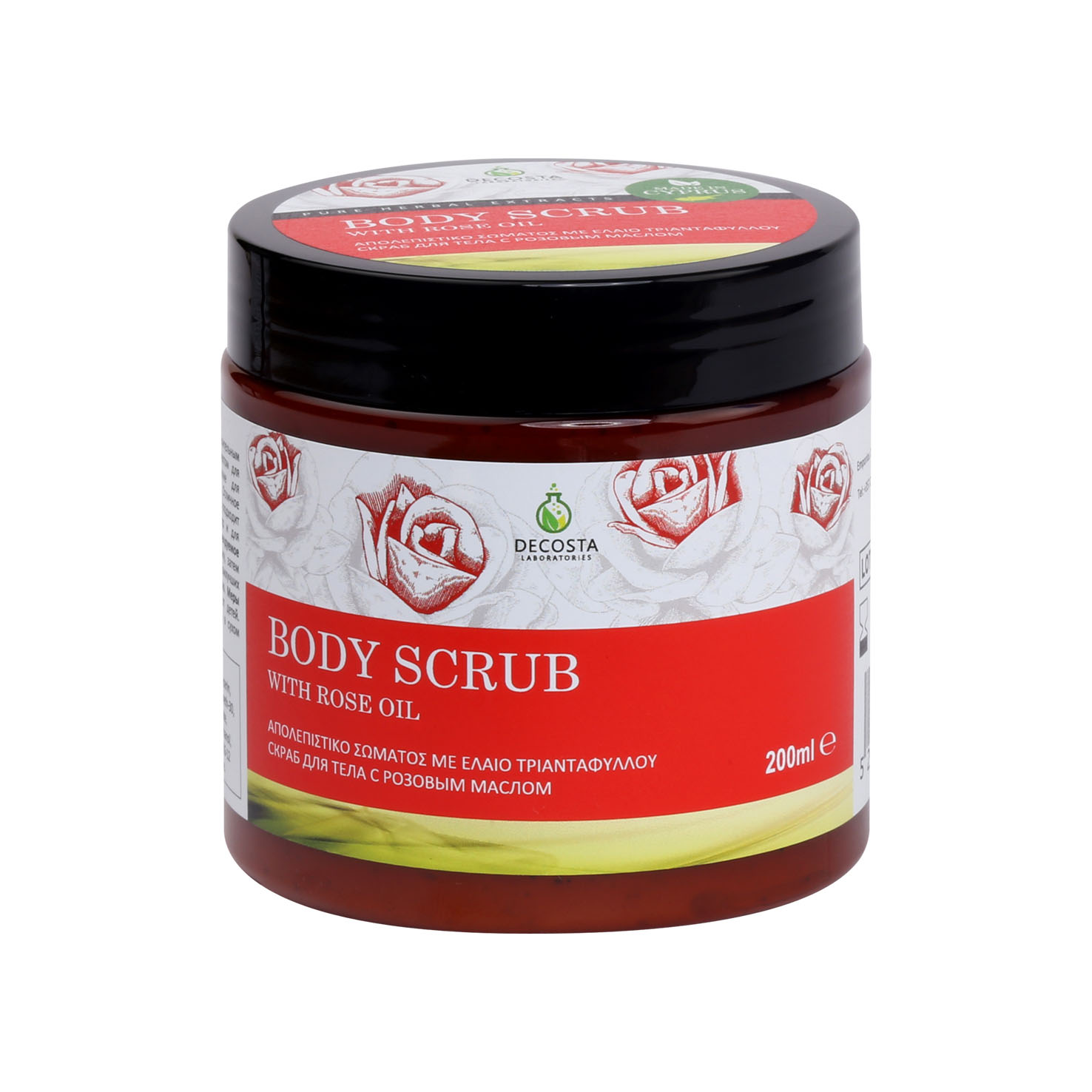 We have been cultivating this unique species of rose for many years, as it thrives in Cyprus’ mild sunny climate, extracting the oil from the petals in our labs for use in our products.Rose oil is a potent anti-inflammatory, loaded with therapeutic benefits for the skin. It is a tissue regenerator, soothing irritated skin, and an excellent moisturiser. A great cleanser and astringent, it is perfect for reducing redness, closing open pores and for prepping the skin for other products.Natural ingredients like tiny walnut and olive pieces will gently remove dead skin, while the pleasant fragrance of this body scrub clears the mind of all worrying thoughts. It smells beautifully, so will put you in a good mood, relax you and help you sleep better.